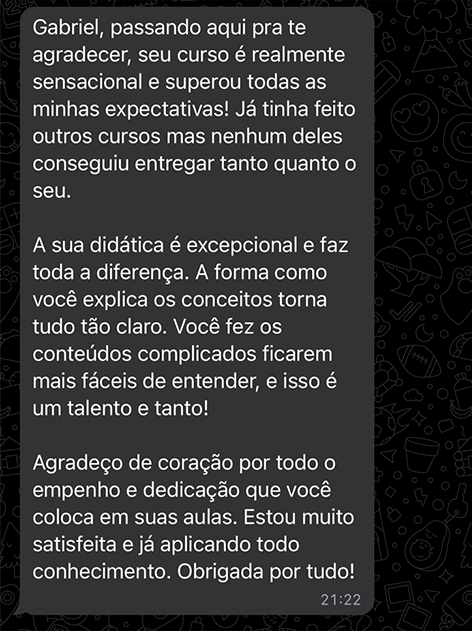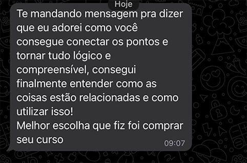 Mas caso você decida que não é o momento certo para investir no treinamento, devolvo 100% do seu dinheiro investido durante esse período, sem burocracia ou dificuldades.